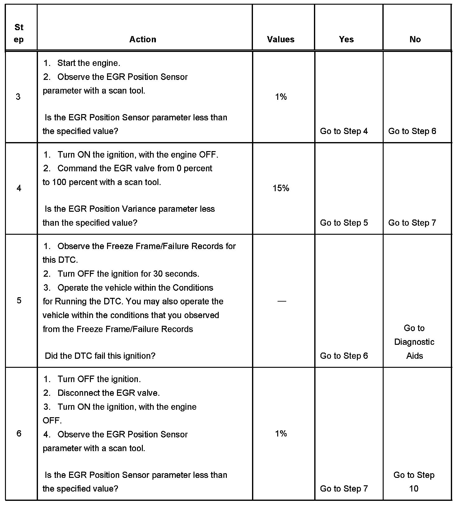 - The EGR Position Sensor parameter is more than 40 percent and is steady for 0.5 seconds after a test failure and before the next test will be run.