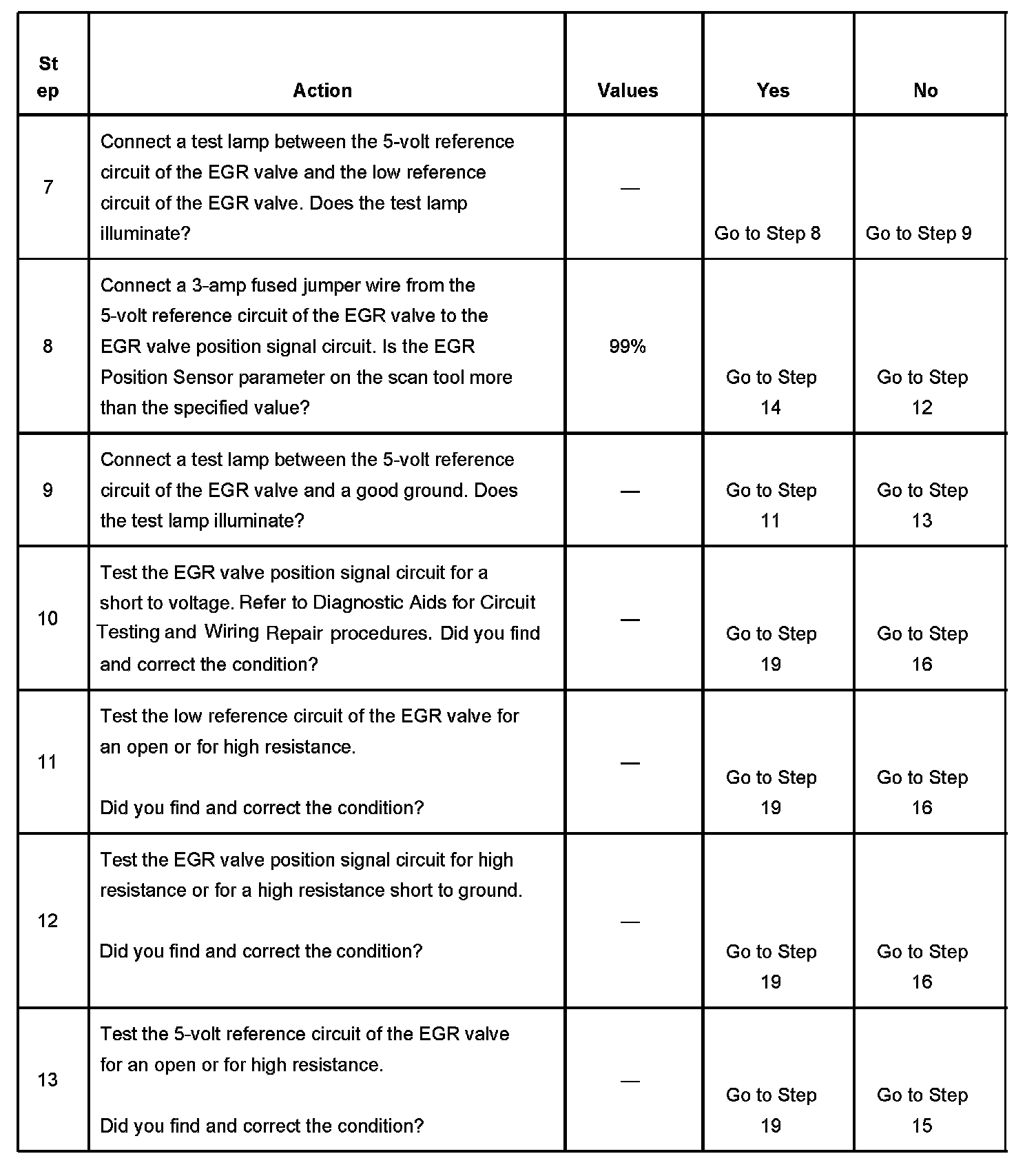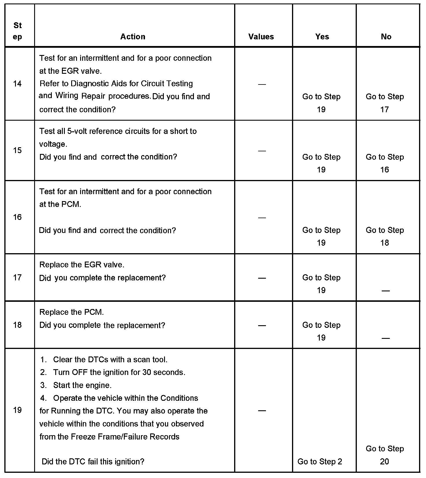 - The EGR valve is commanded to 0 percent for 20 seconds after the EGR valve has been commanded to open more than 40 percent for 0.5 seconds.