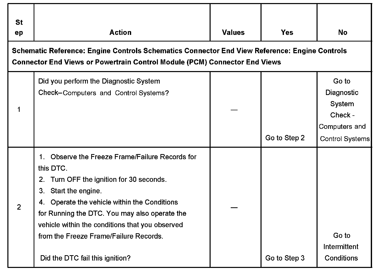 - The control module records the operating conditions at the time the diagnostic fails. The first time the diagnostic fails, the control module stores this information in the Failure Records. If the diagnostic reports a failure on the second consecutive ignition cycle, the control module records the operating conditions at the time of the failure. The control module writes the operating conditions to the Freeze Frame and updates the Failure Records.