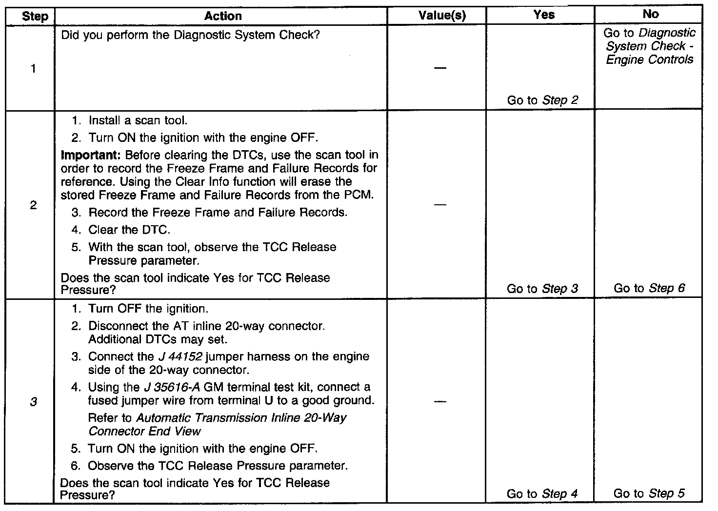 ^ No TCC PWM solenoid valve DTC P0741, P0742 or P1860.