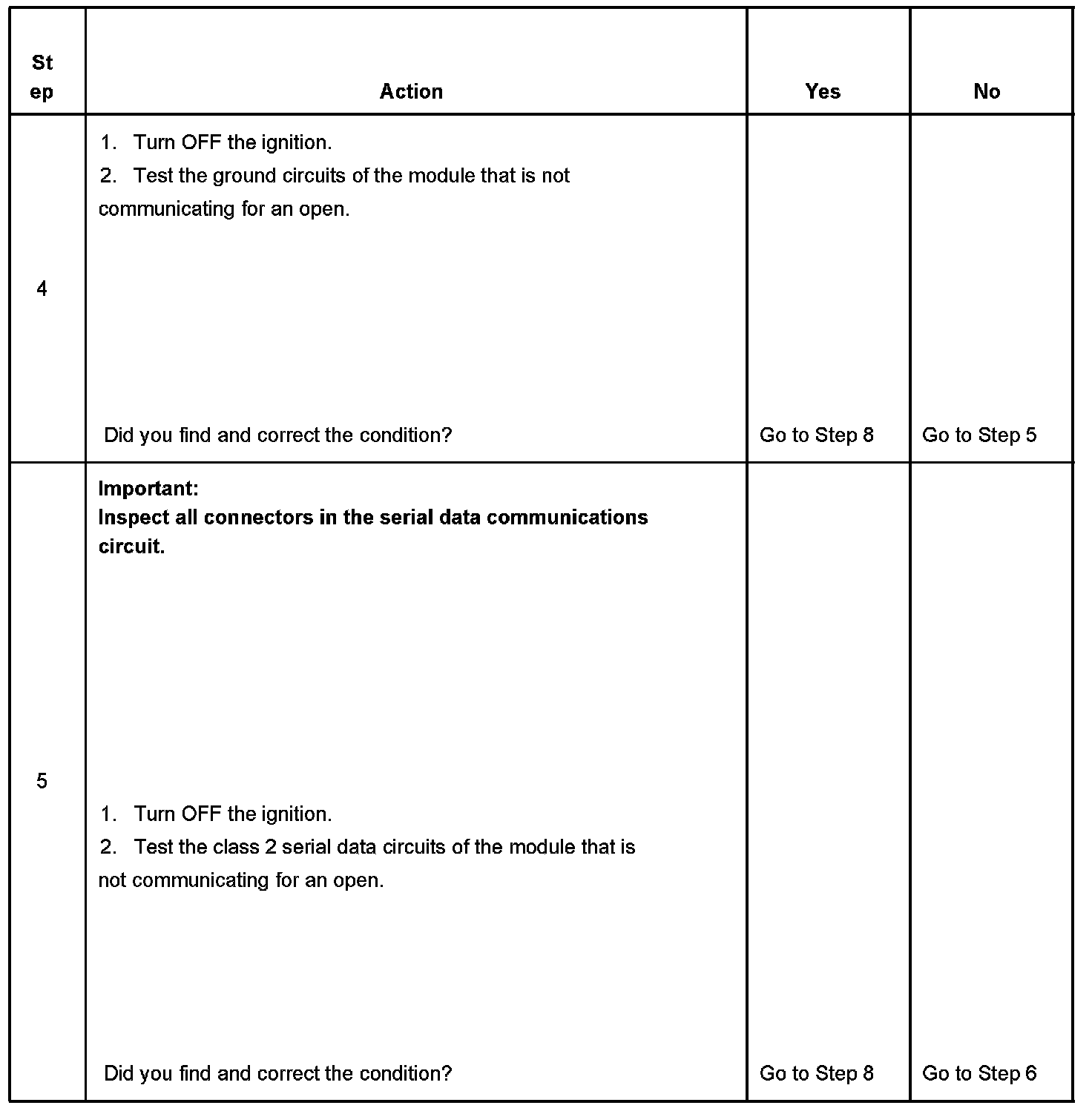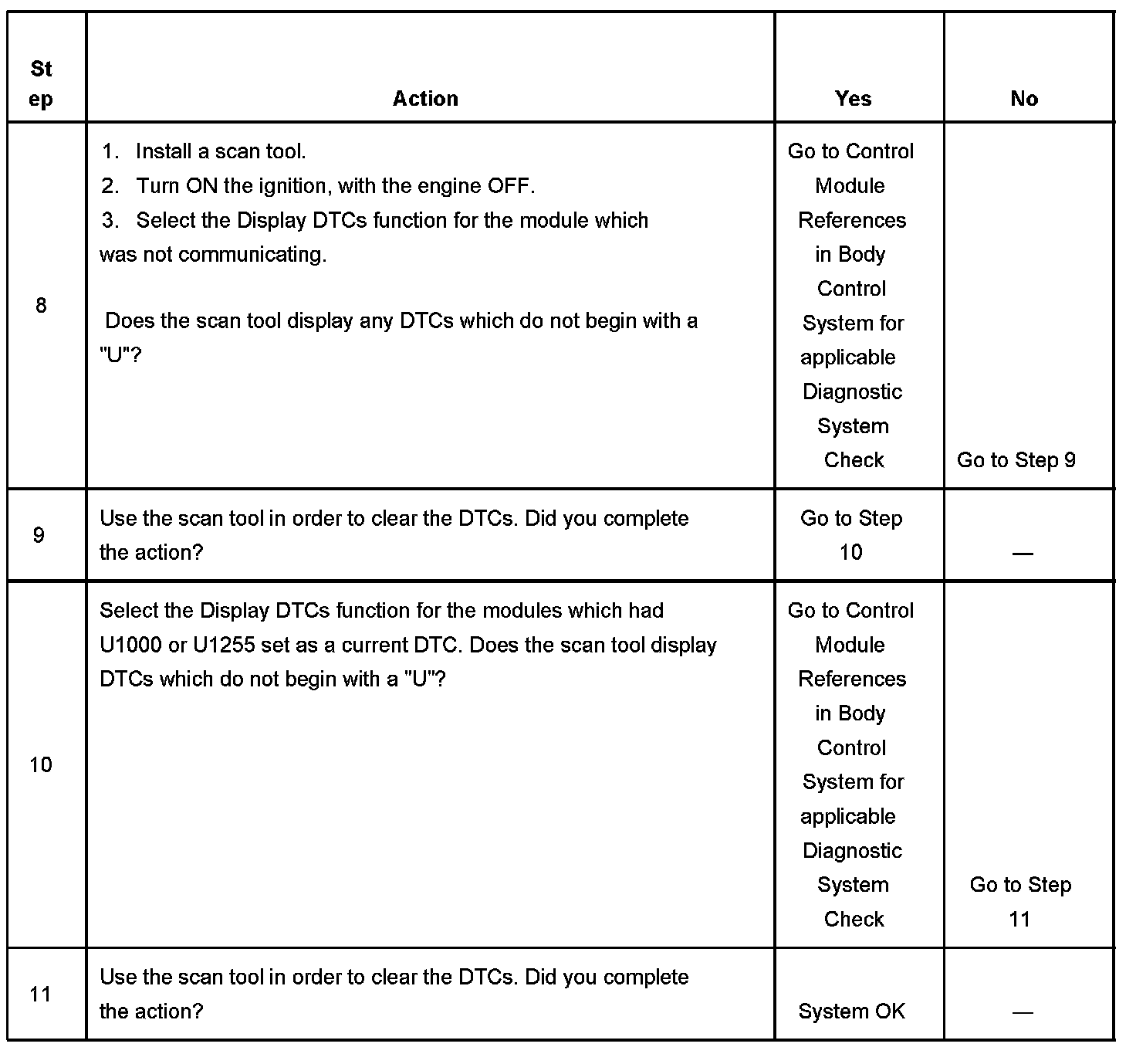 9. The modules which can communicate indicate the module which cannot communicate. You must clear the serial data communication DTCs from these modules to avoid future misdiagnosis.