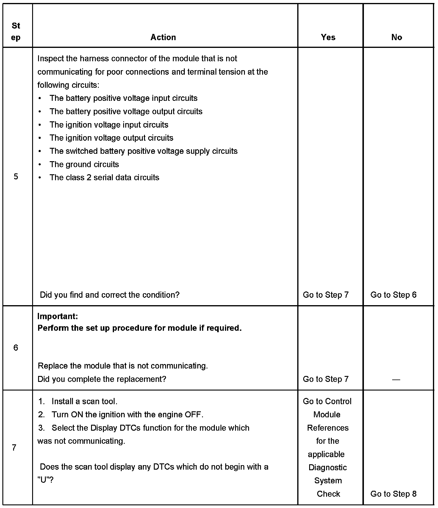 7. The module which was not communicating on the class 2 serial data circuit may have set Loss of Communication DTCs for those modules that it was monitoring.