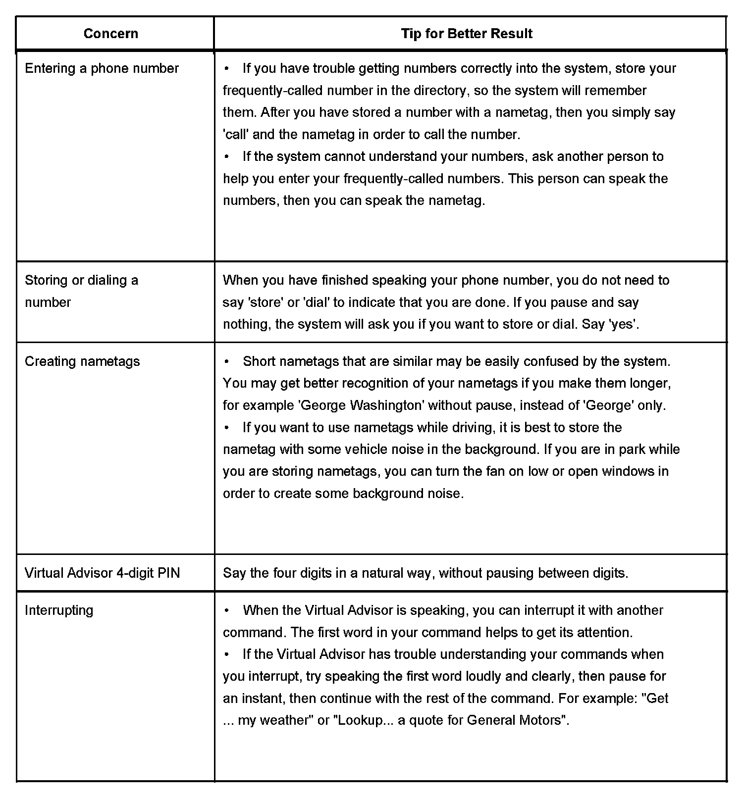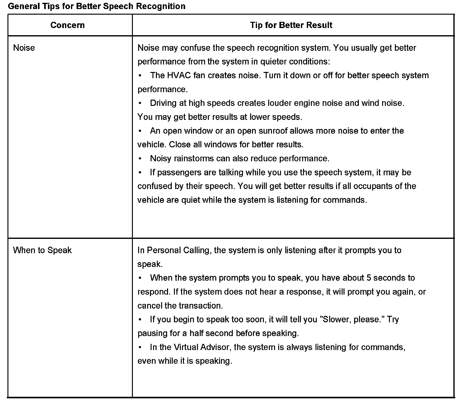 The OnStar(R) speech recognition systems use speech technology that is designed to understand a wide range of American English speakers. Although there is no one right way to speak English, the system will work best when users try to modify their pronunciation should they encounter difficulty. Users who do not obtain good results are advised to try the tips and workarounds found in this section.