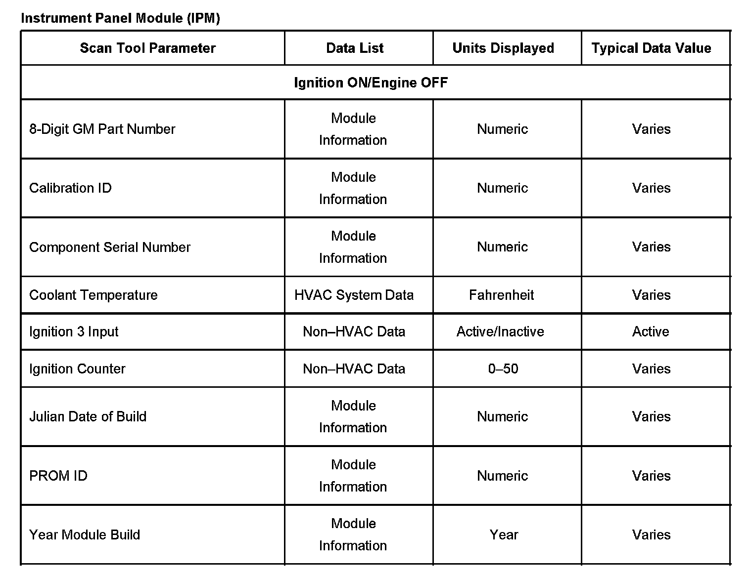 Scan Tool Data List - Instrument Panel Module (IPM)