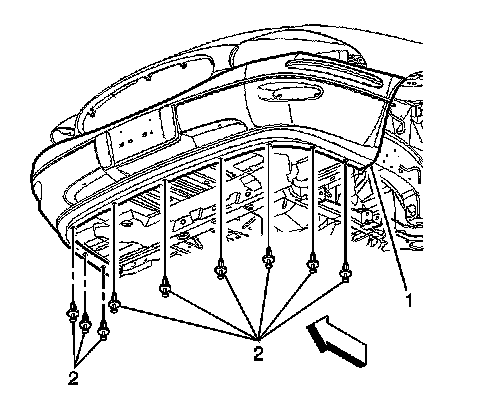 2. Hand start the fasteners (1,2) into the front bumper fascia.