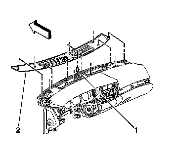 1. Remove the defroster grille by carefully prying upward in order to release the retainers.