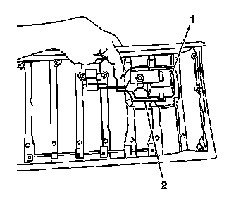 3. Install the IP storage compartment door handle retainer clip (2).