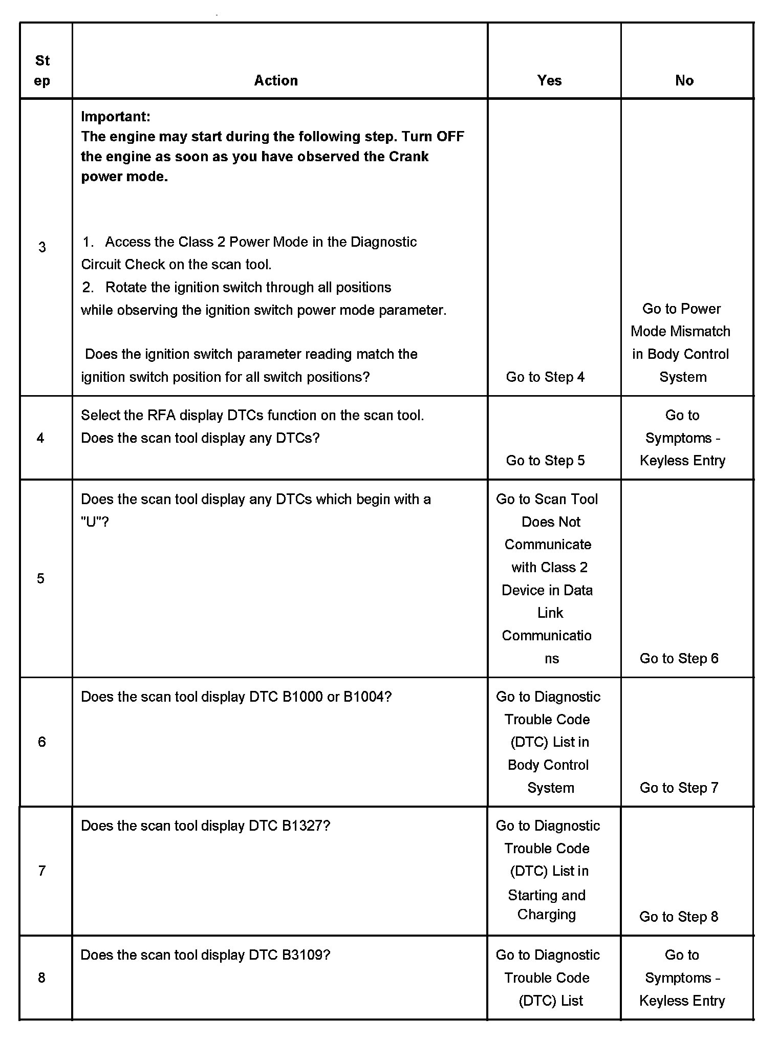 2. Lack of communication may be due to a partial malfunction of the class 2 serial data circuit. The specified procedure will determine the particular condition. The RCDLR is listed as Remote Function Actuator in the scan tool.