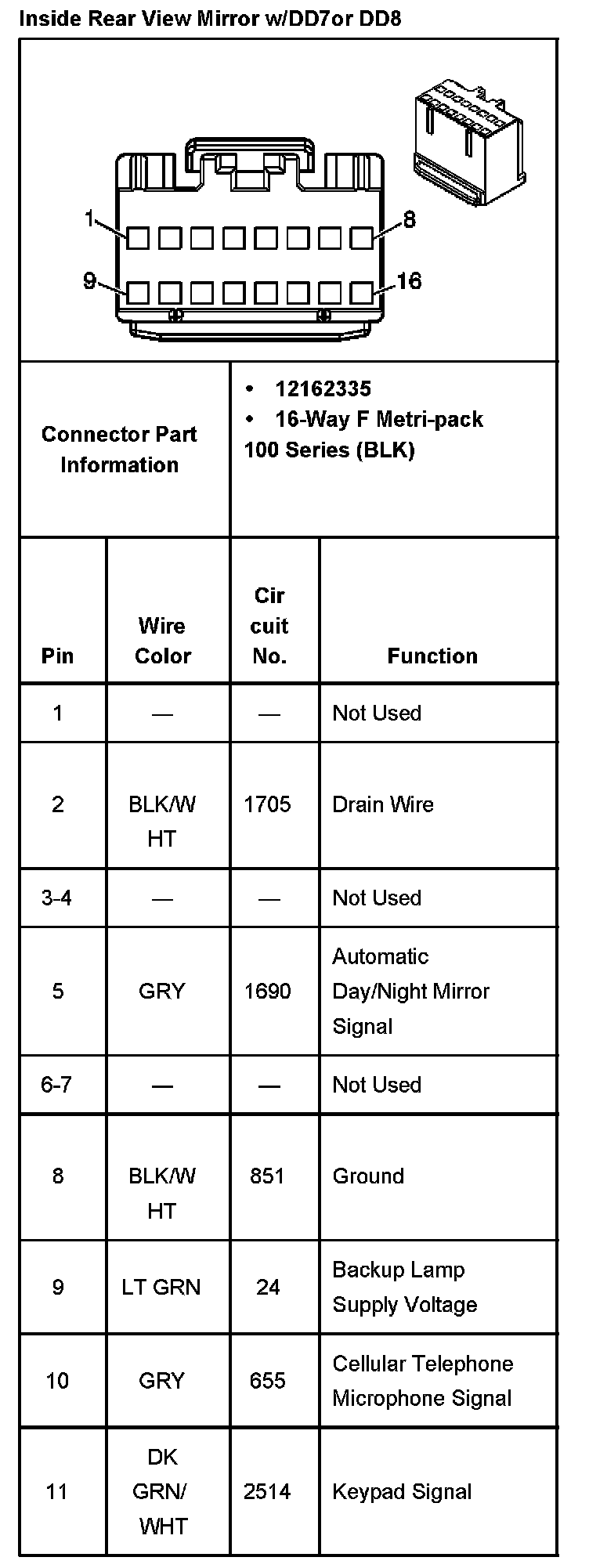Inside Rear View Mirror With RPO Code DD7 Or DD8 Part 2: