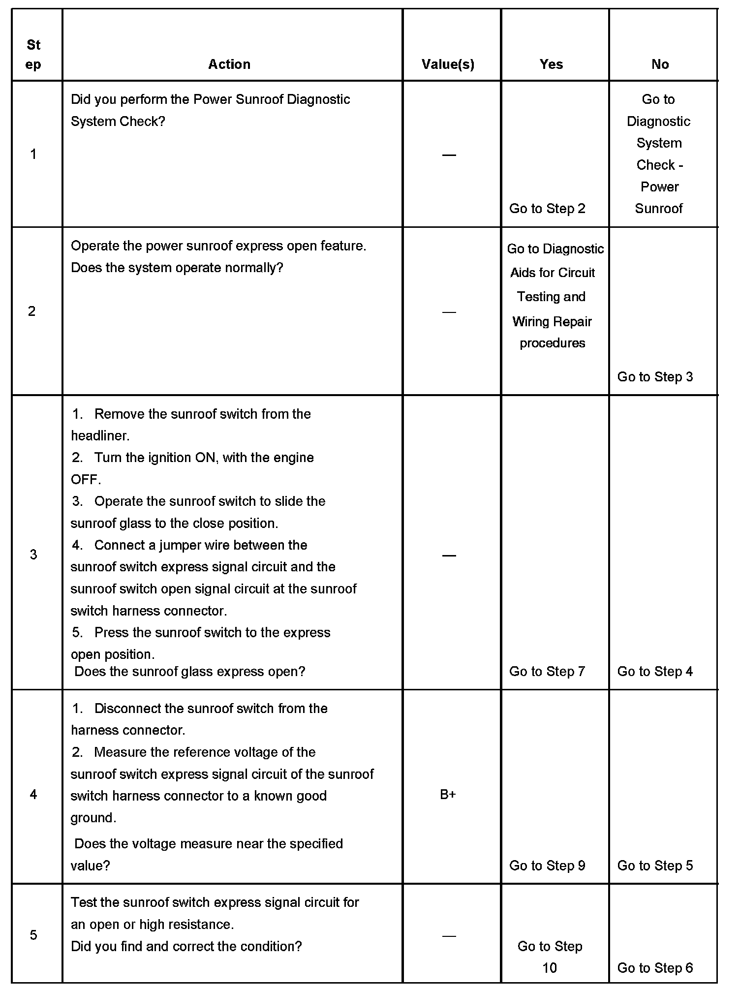 POWER SUNROOF DOES NOT OPEN TO EXPRESS POSITIONTEST DESCRIPTION