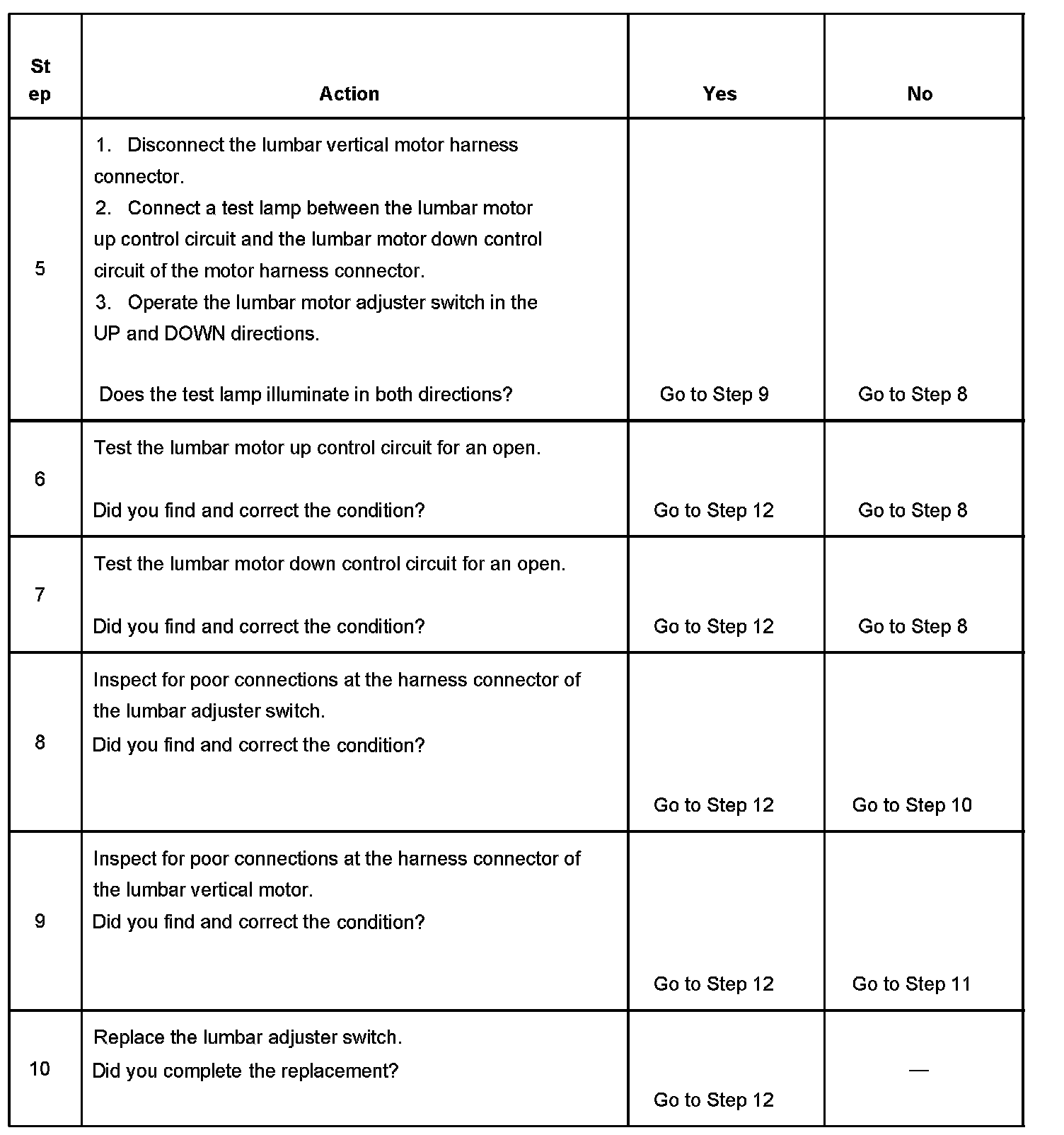 Lumbar Support Does Not Move Up or Down (Without RPO A45)