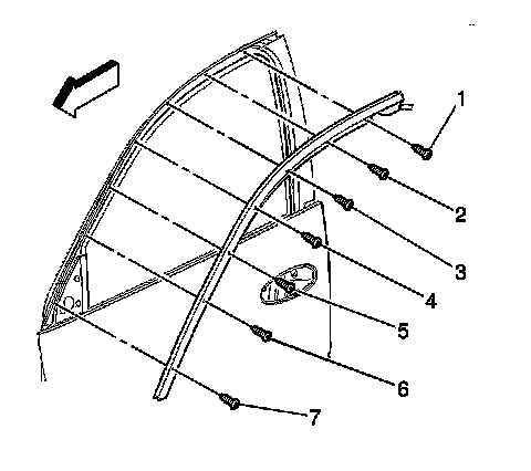 4. Remove the auxiliary weatherstrip screws (1-7).