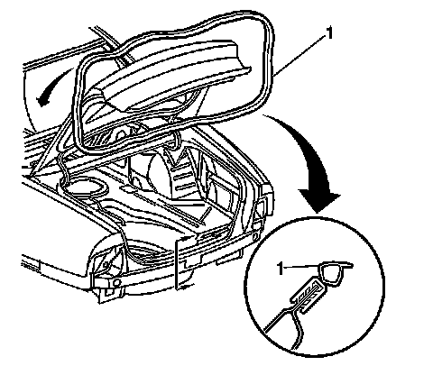 2. Pull the weatherstrip (1) from the rear compartment lid opening.