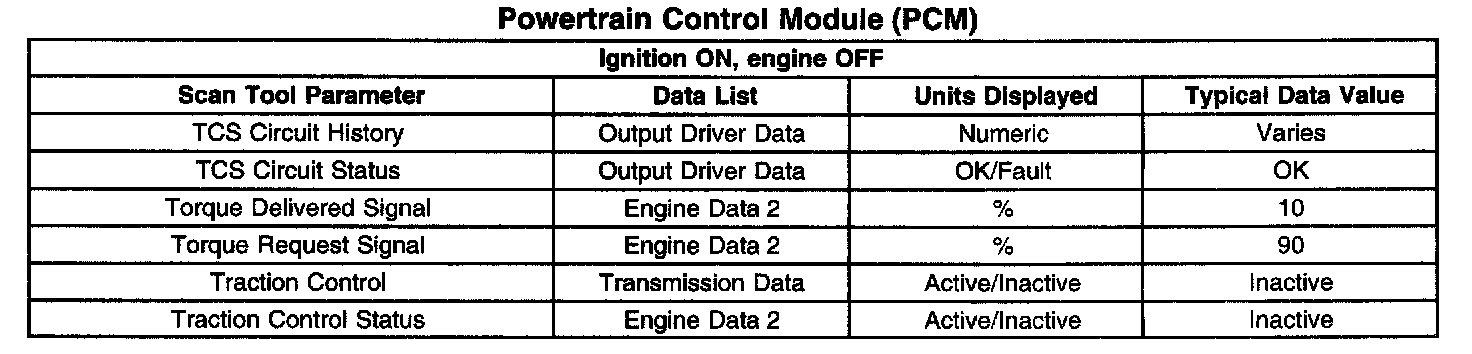 Powertrain Control Module (PCM) Scan Tool Data List: