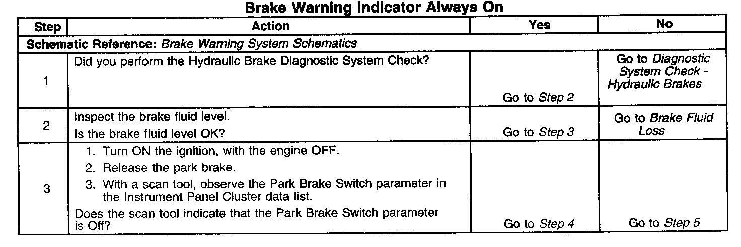 Brake Warning Indicator Always On: