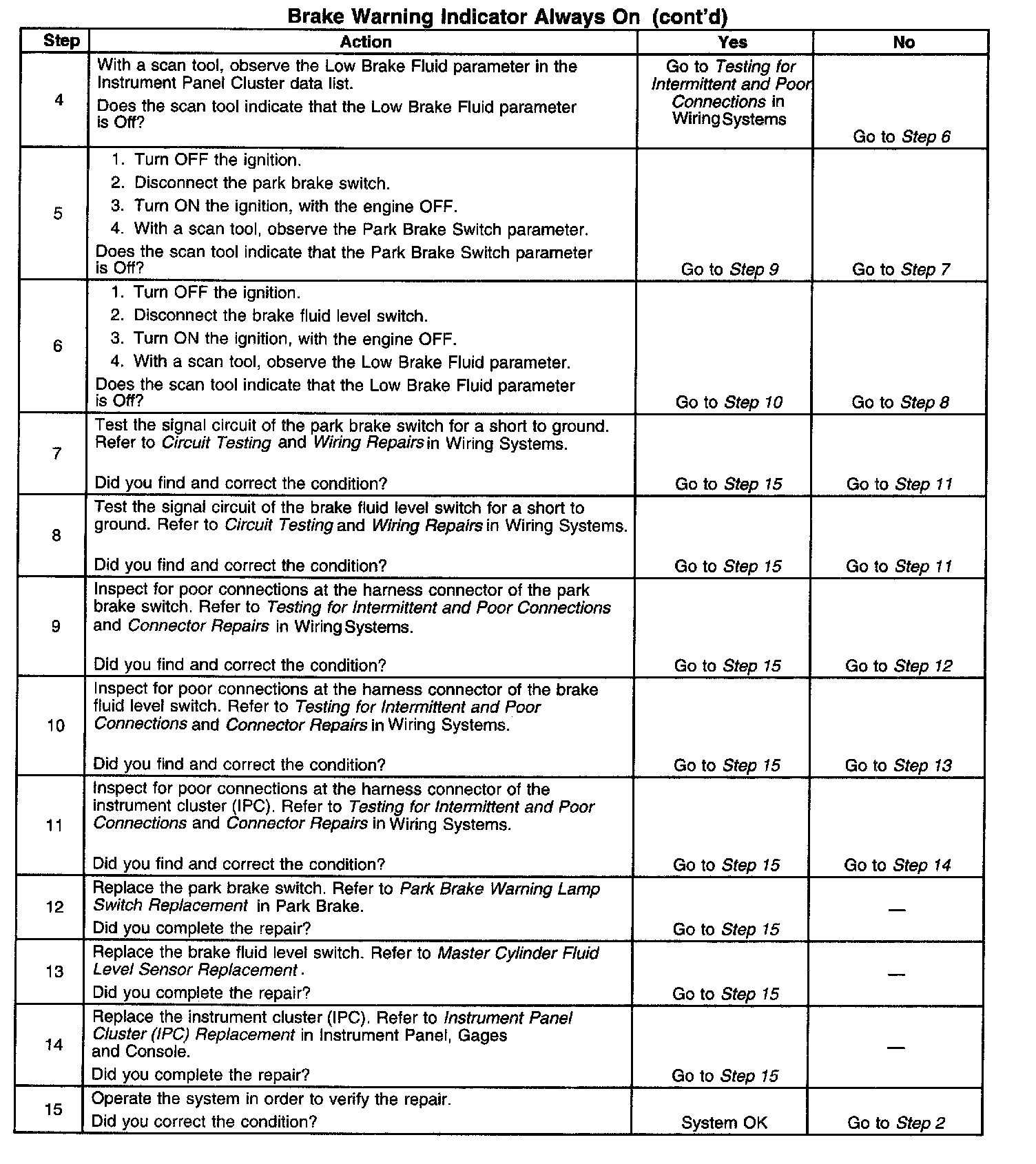 Brake Warning Indicator Always On (cont'd):