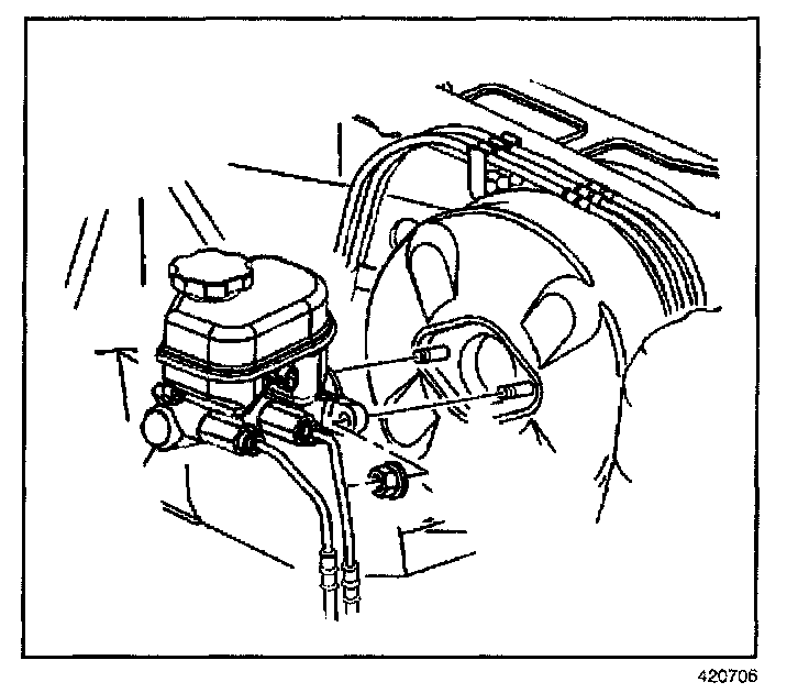 9. Install the master cylinder onto the booster. Refer to Master Cylinder Replacement. Master Cylinder Replacement