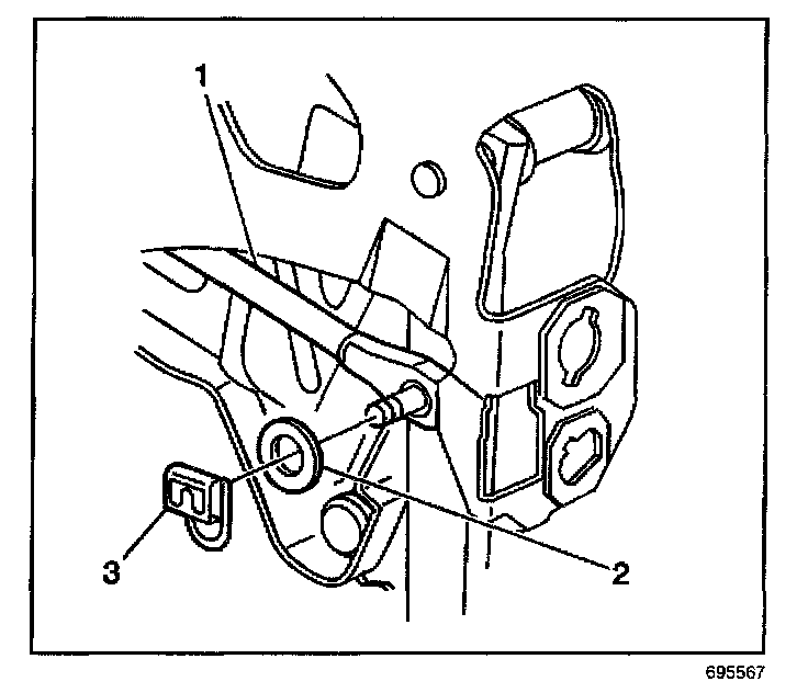 5. Install the vacuum brake booster pushrod retainer clip (3) to the brake pedal clevis pin.