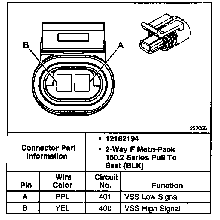 Vehicle Speed Sensor Connector, Wiring Harness Side: