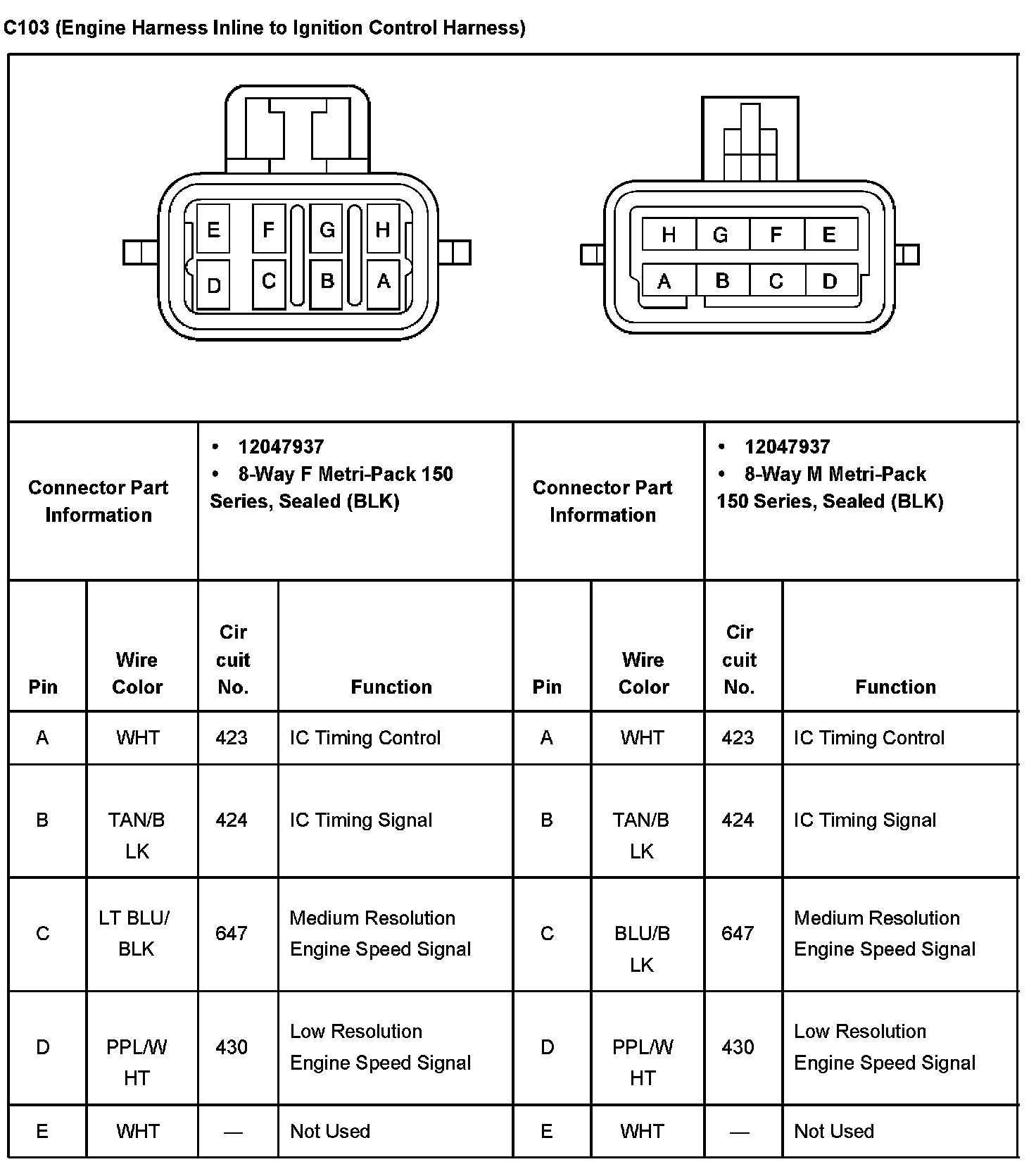 C103 (Engine Harness Inline To Ignition Control Harness) Part 1: