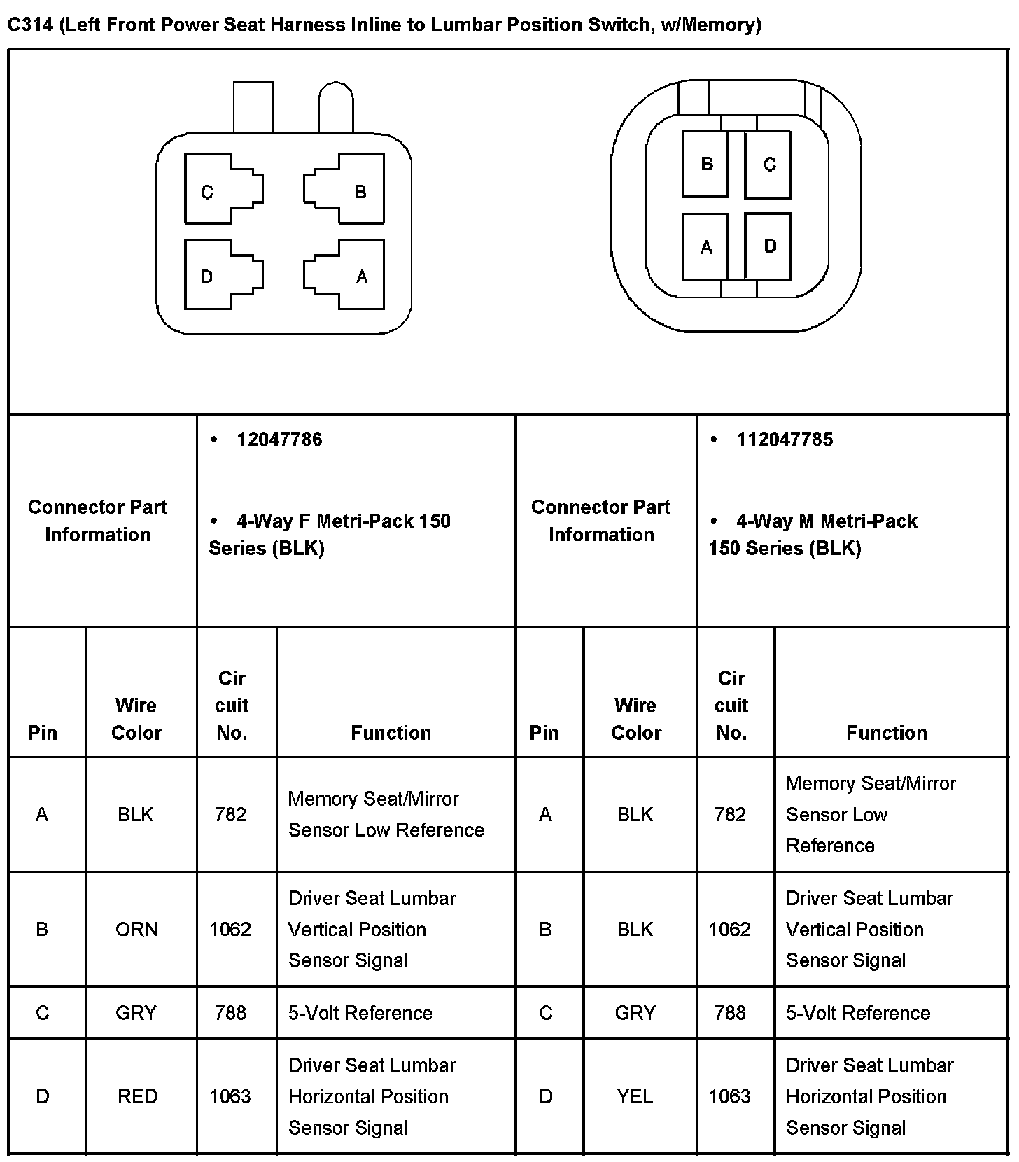 C314 (Left Front Power Seat Harness Inline To Lumbar Position Switch, W/Memory):