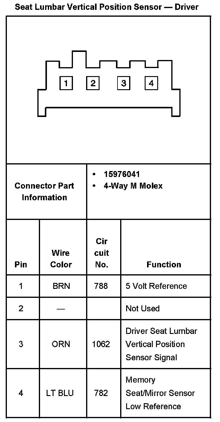 Seat Rear Vertical Position Sensor - Driver With RPO Code A45: