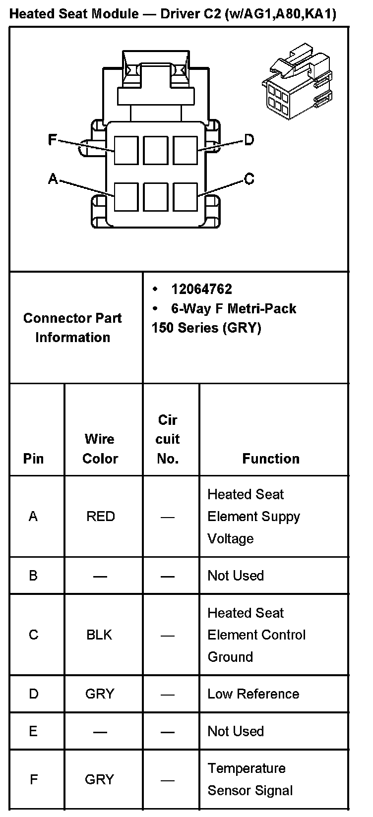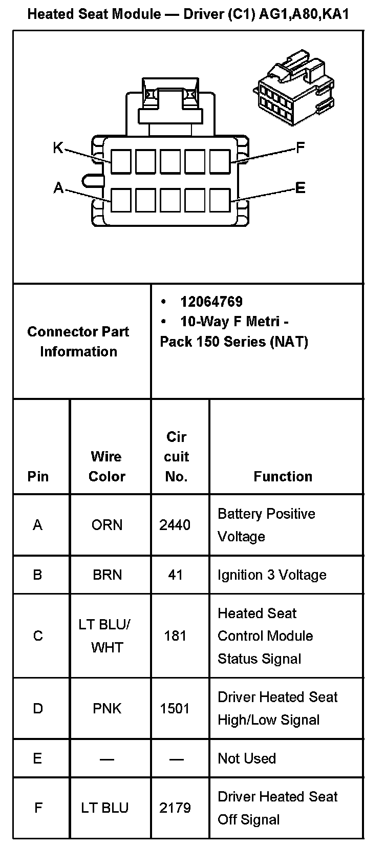 Heated Seat Module - Driver (C1) With RPO Codes AG1,A80,KA1 Part 2:
