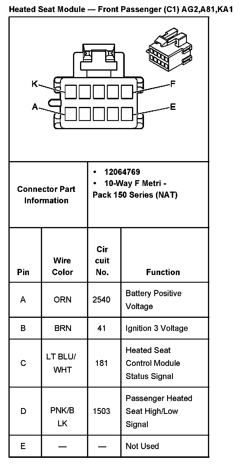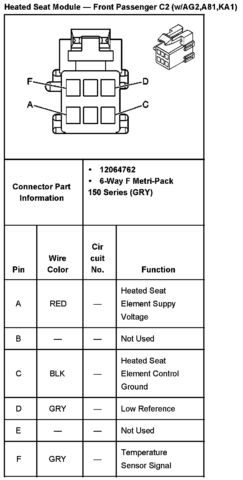 Heated Seat Module - Front Passenger C2 With RPO Codes AG2,A81,KA1: