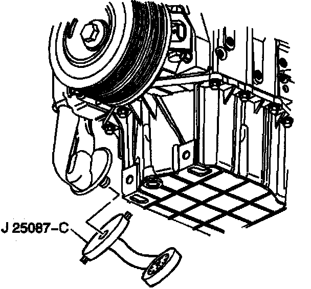 3. Assemble the plunger valve in the large hole of J 25087-C base and the hose in the small hole of J 25087-C base. Connect the gage to the end of the hose.