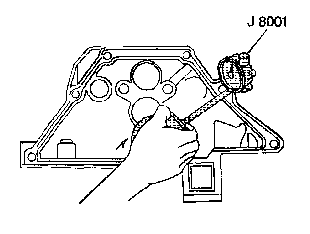 11.3. Place J 8001 on the transmission mounting bolt hole boss. Set the indicator to 0.