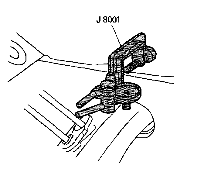 6. Using J 8001 measure the balance shaft end play. End play must not exceed 0.028 mm (0.008 inch).