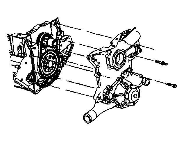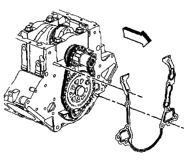 2. Install the engine front cover. Align the cogs on the crankshaft sprocket with the cogs on the oil pump in the engine front cover.