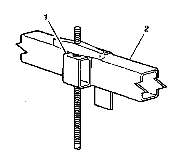 22. Install the assembled lift hook bracket, J 28467-6A (1), over the radiator shelf tube, J 28467-2A (2).