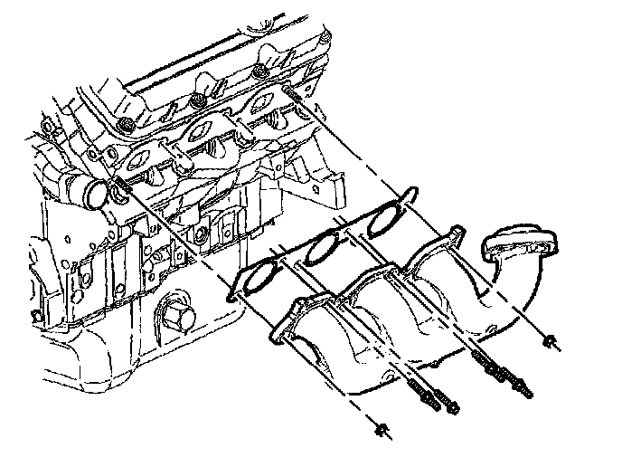 7. Remove the left exhaust manifold and the gasket from the engine. Do not reuse the gasket.