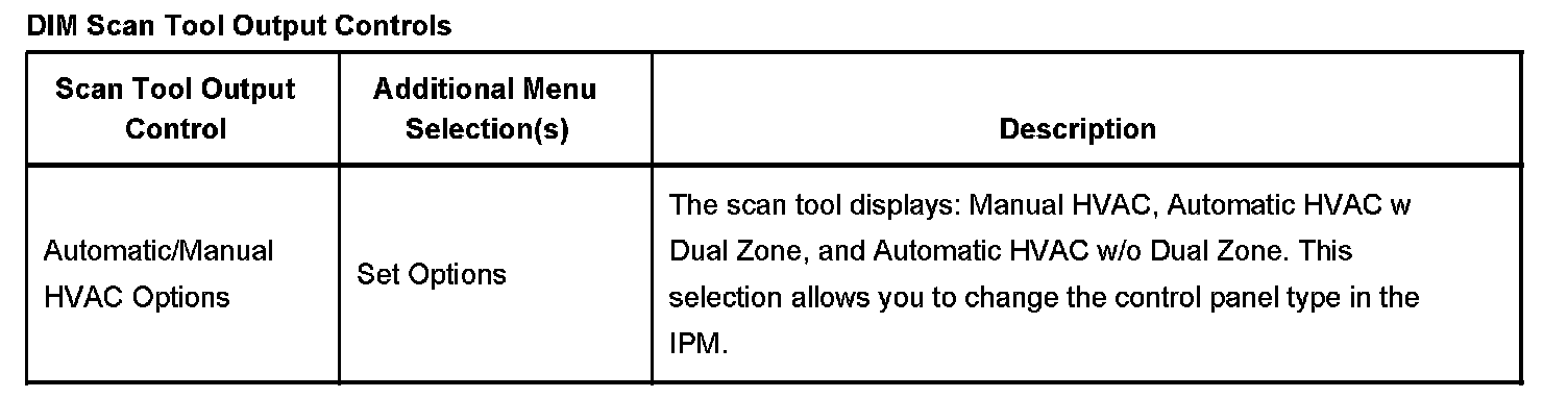 Scan Tool Output Controls - Dash Integration Module (DIM)