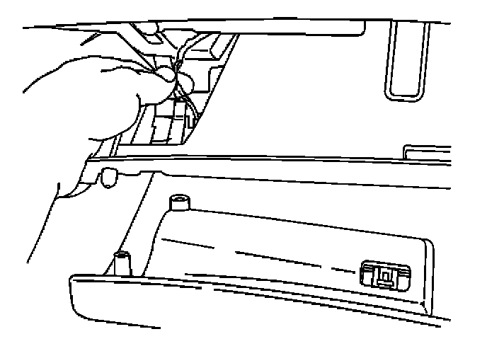 3. Depress the IP compartment lamp and switch assembly locking tabs in order to remove the lamp assembly from the IP storage compartment.