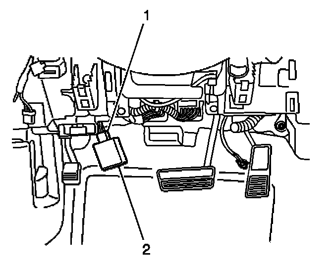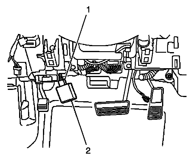 3. Disconnect the electrical connector (1) from the turn signal/hazard warning flasher (2).