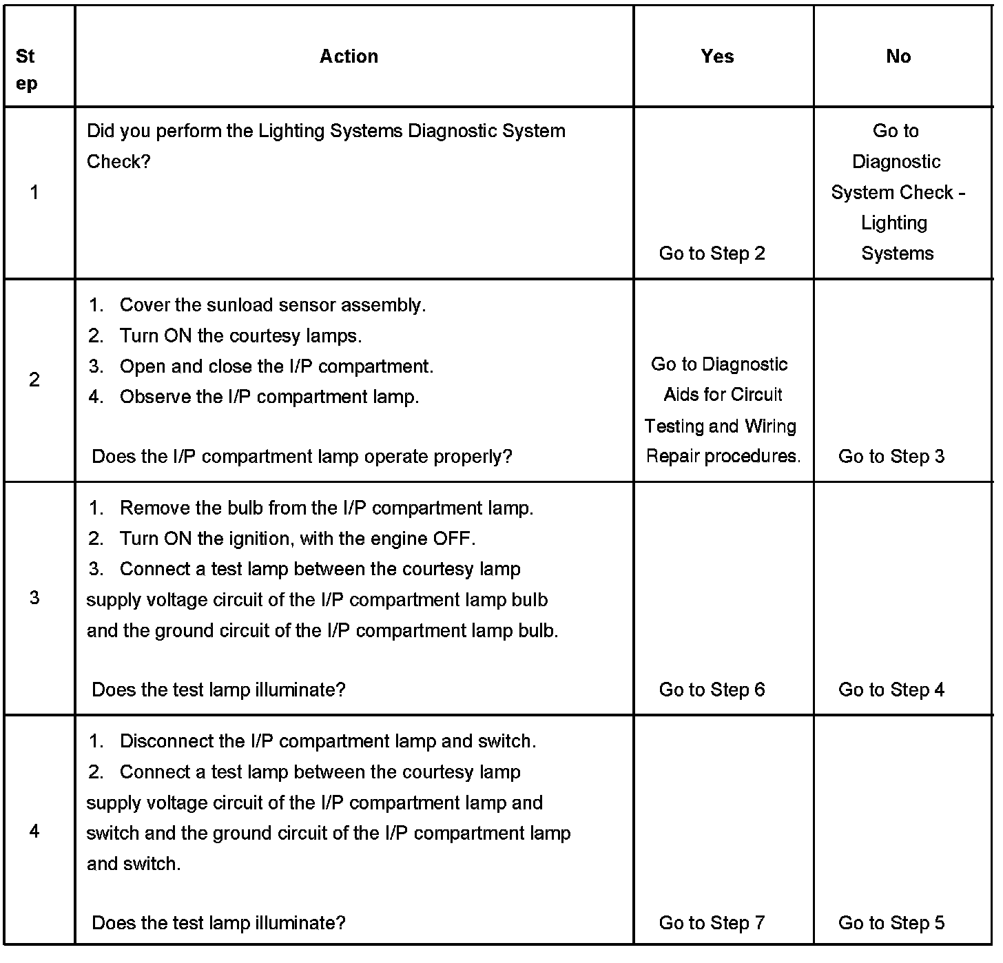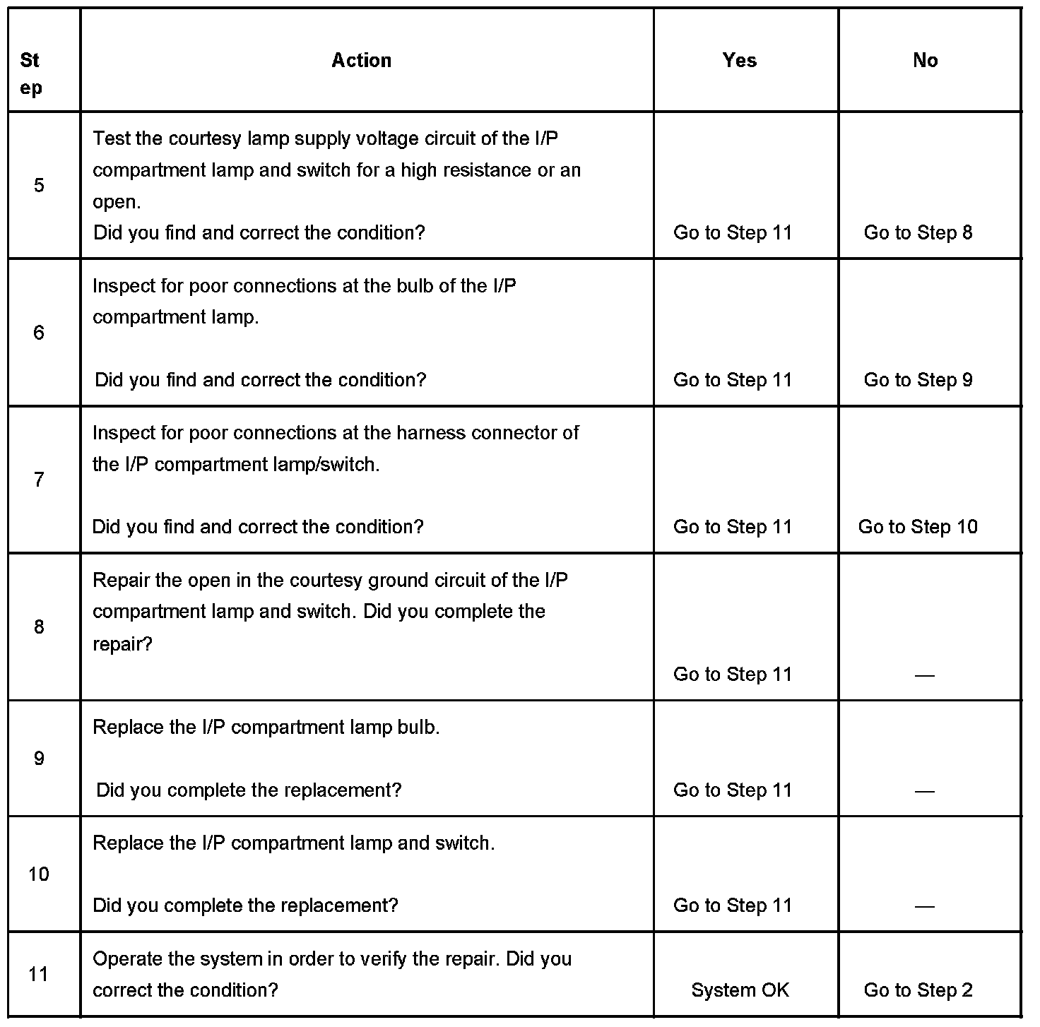 Instrument Panel (I/P) Compartment Lamp Inoperative
