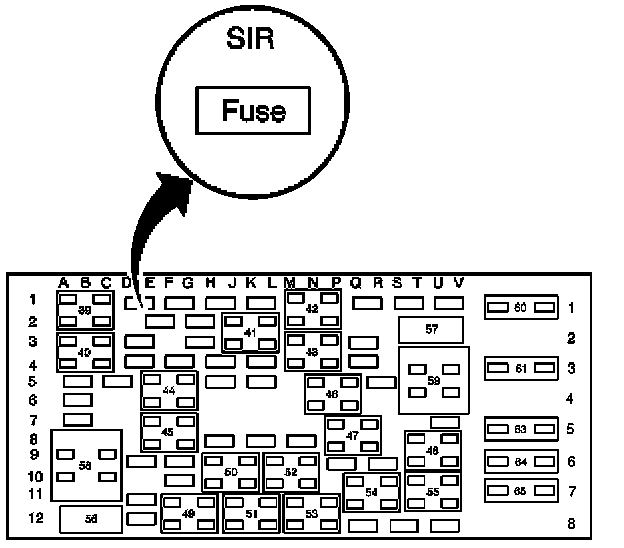 6. Locate and remove the SIR fuse from the rear fuse center.