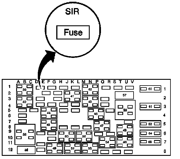 6. Locate and remove the SIR fuse from the rear fuse center.