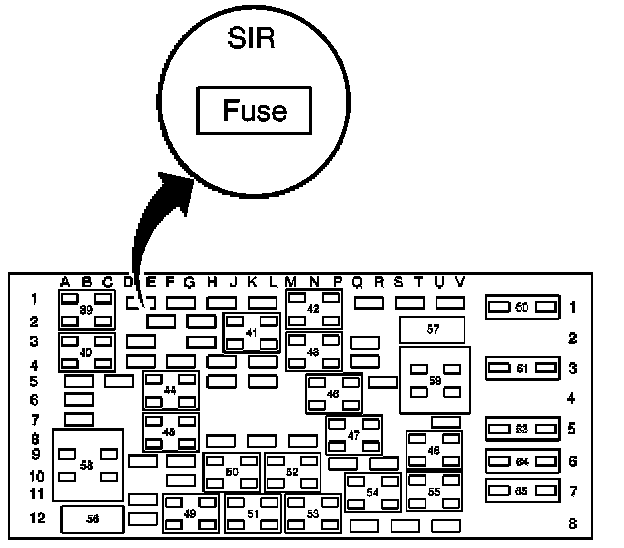 6. Locate and remove the SIR fuse from the rear fuse center.