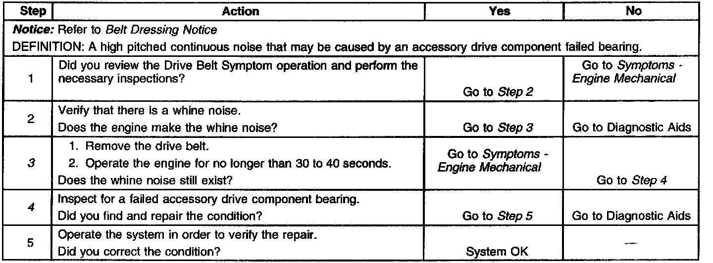 Drive Belt Whine DiagnosisDiagnostic Aids