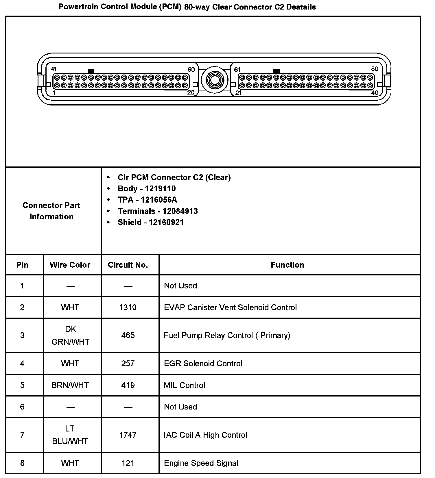 Powertrain Control Module (PCM) 80-Way Clear Connector C2 Details Part 1:
