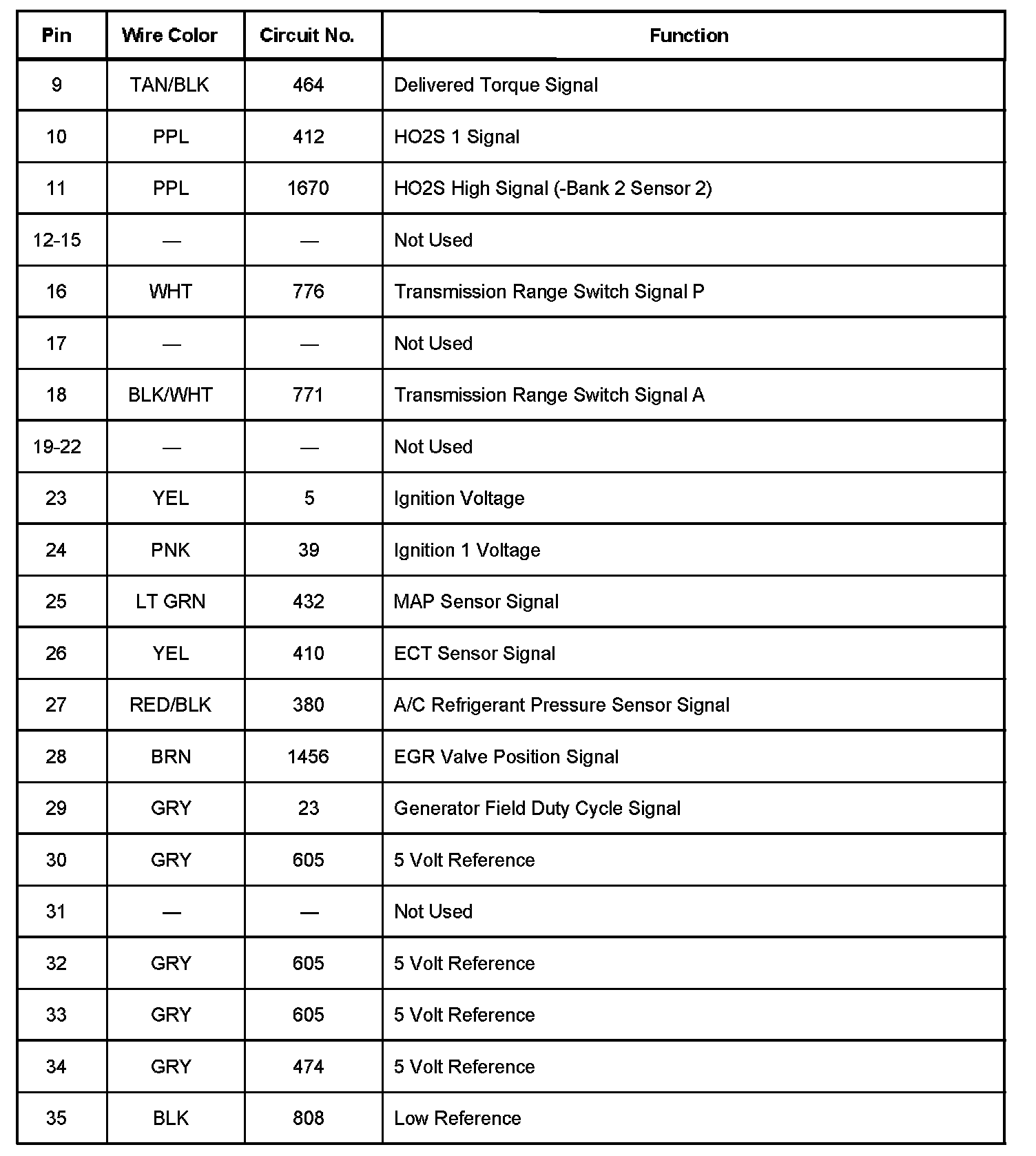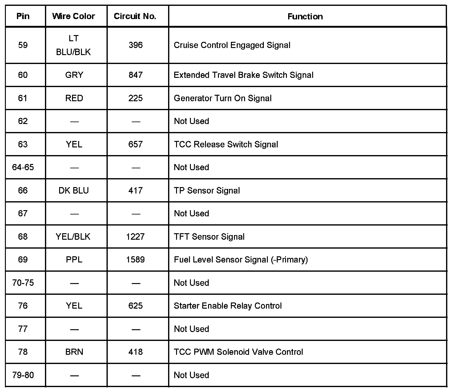 Powertrain Control Module (PCM) 80-Way Clear Connector C2 Details Part 2: