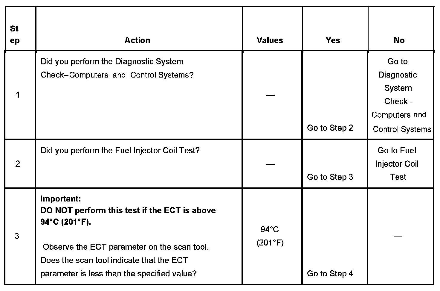 3. The engine coolant temperature (ECT) must be below the operating temperature in order to avoid irregular fuel pressure readings due to hot soak fuel boiling.
