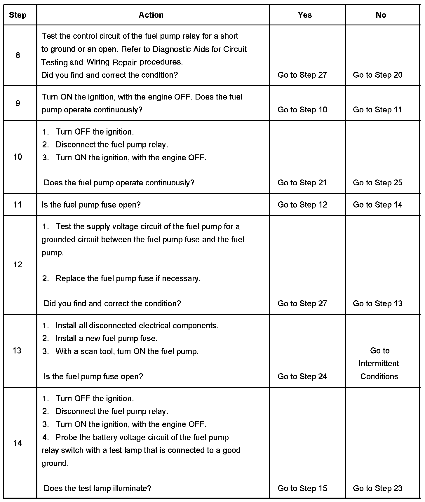 Fuel Pump Electrical Circuit Diagnosis