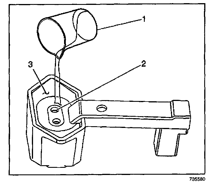 9. Pour the fuel sample from the beaker (1) into the J 44175 , until the level of the fuel is at the top of each fuel test port (2).