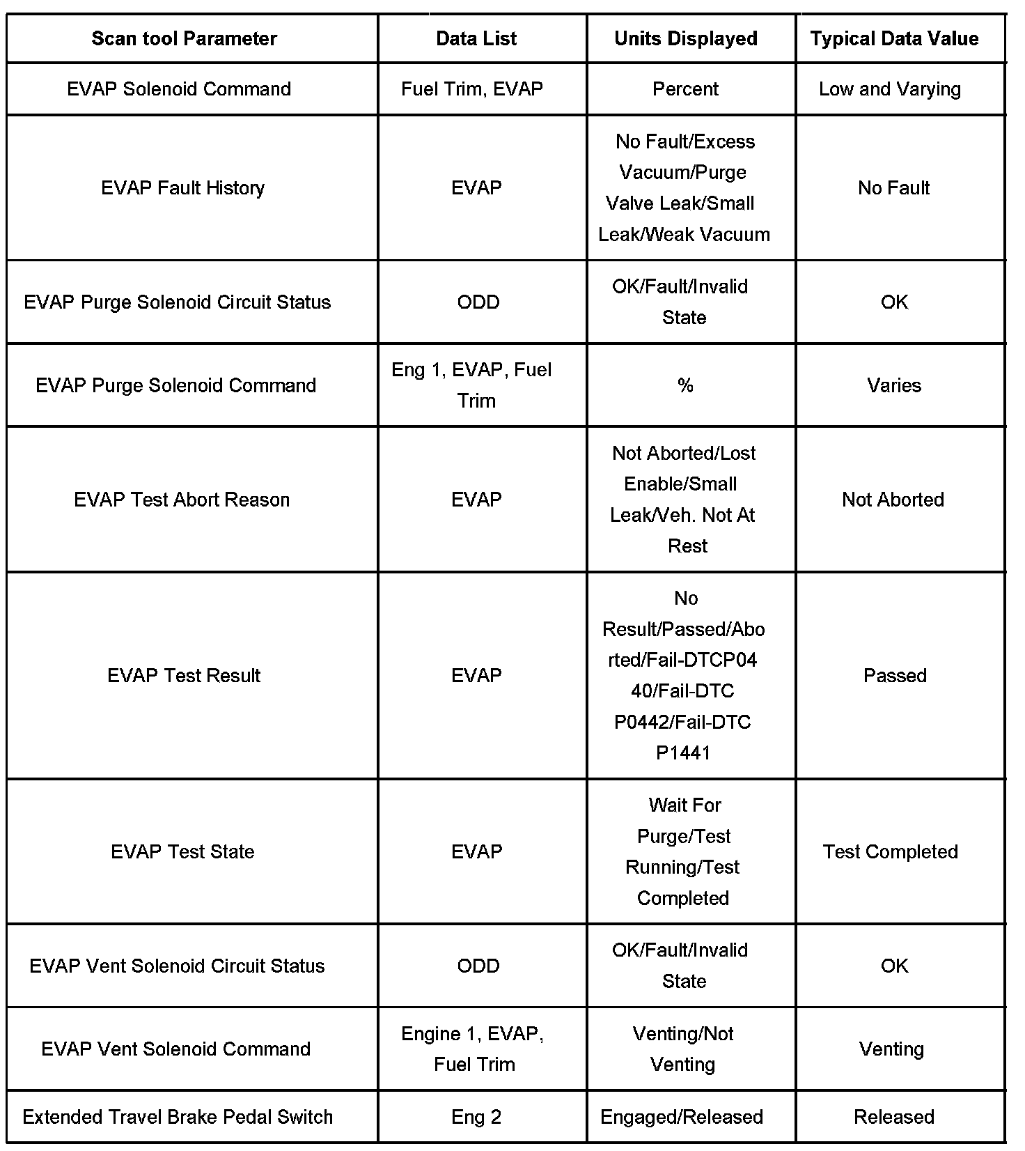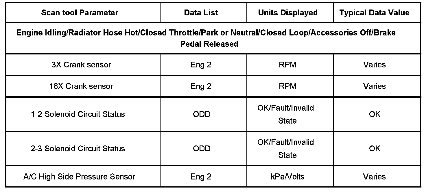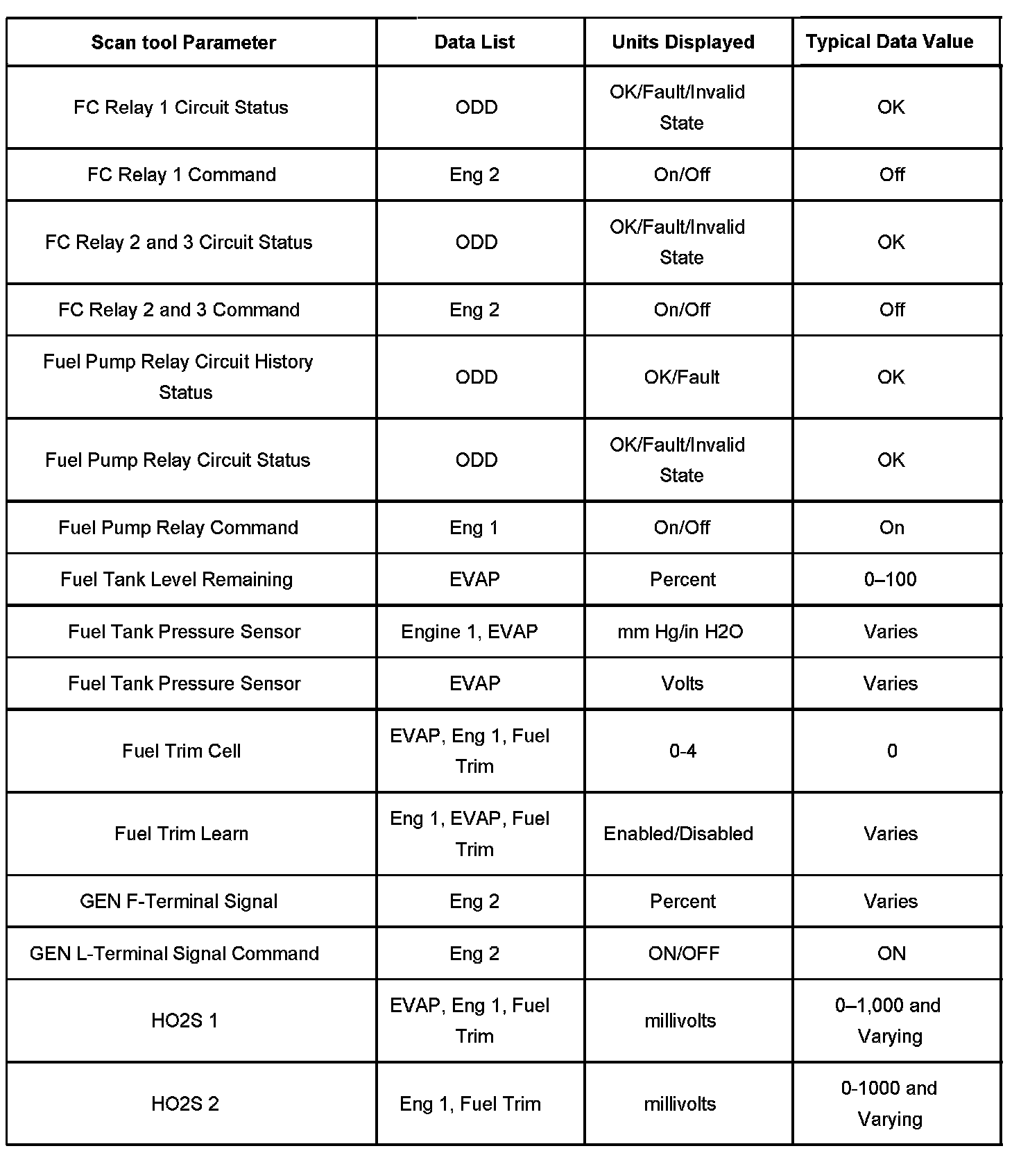 The Engine Scan Tool Data List contains all engine related parameters that are available on the scan tool. The list is arranged in alphabetical order. A given parameter may appear in any one of the data lists, and in some cases may appear more than once, or in more than one data list in order to group certain related parameters together.