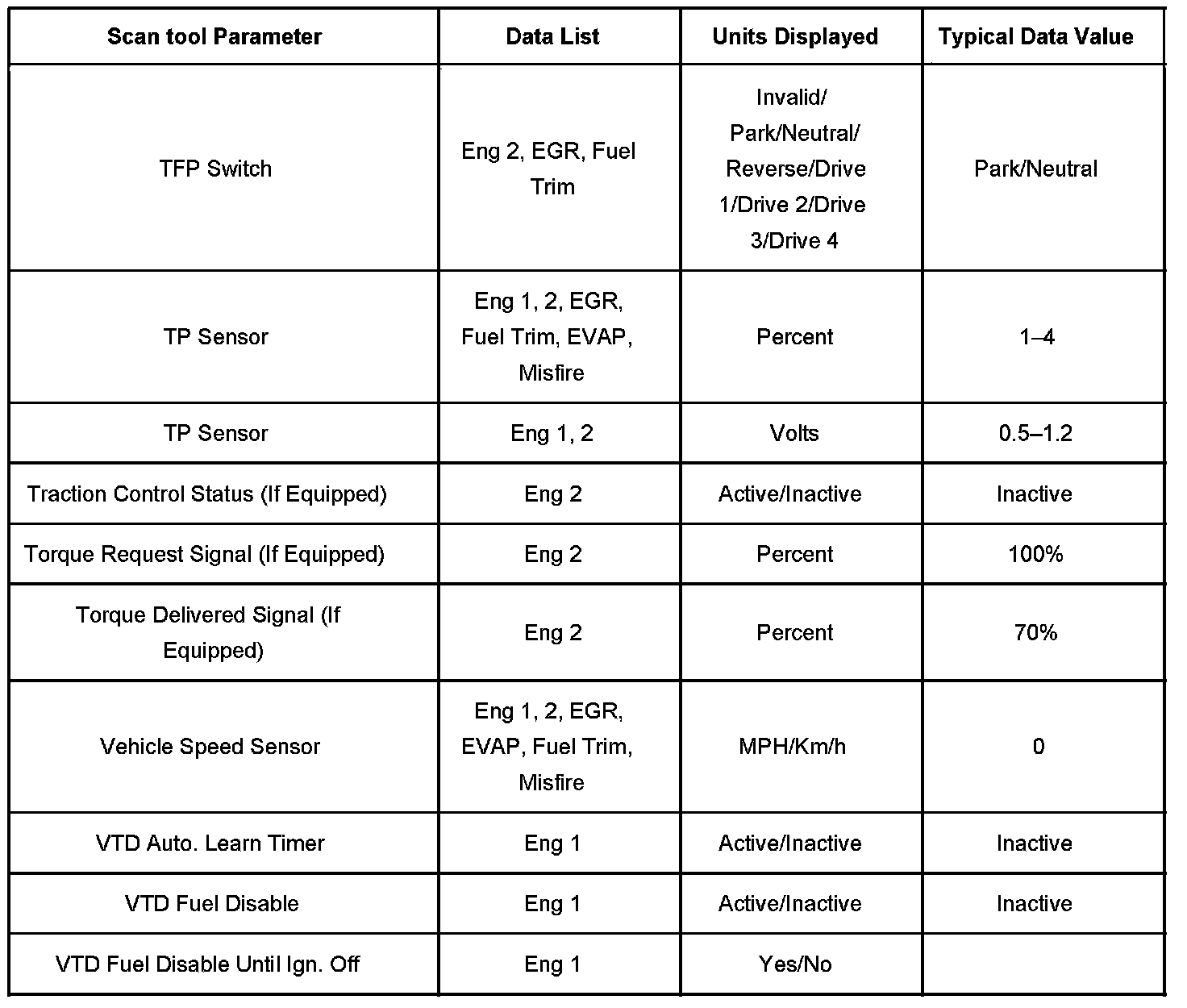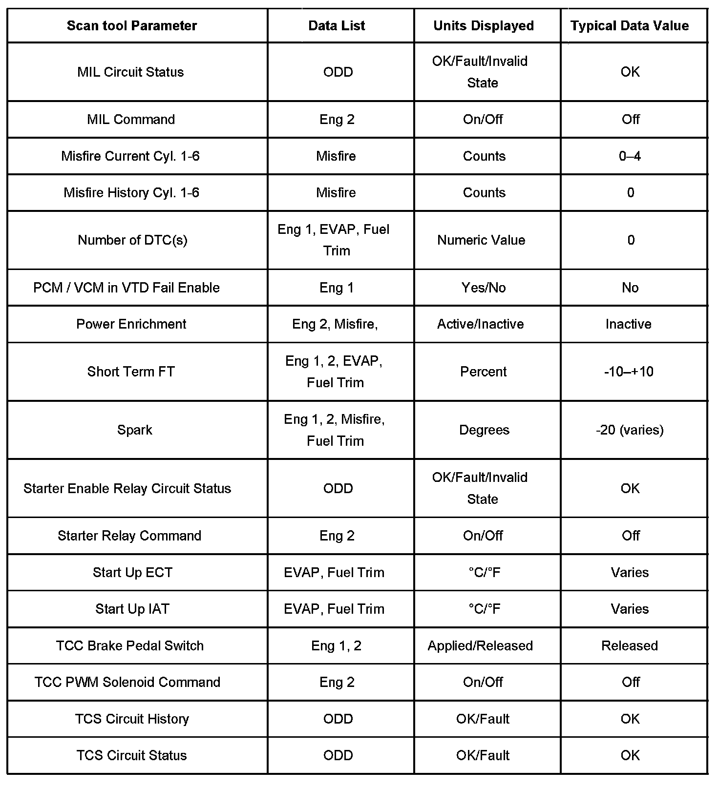 The column labeled Data List indicates where a parameter can be located on the scan tool. Refer to the scan tool operating manual for the exact locations of the data lists. The following is a description of each term listed: