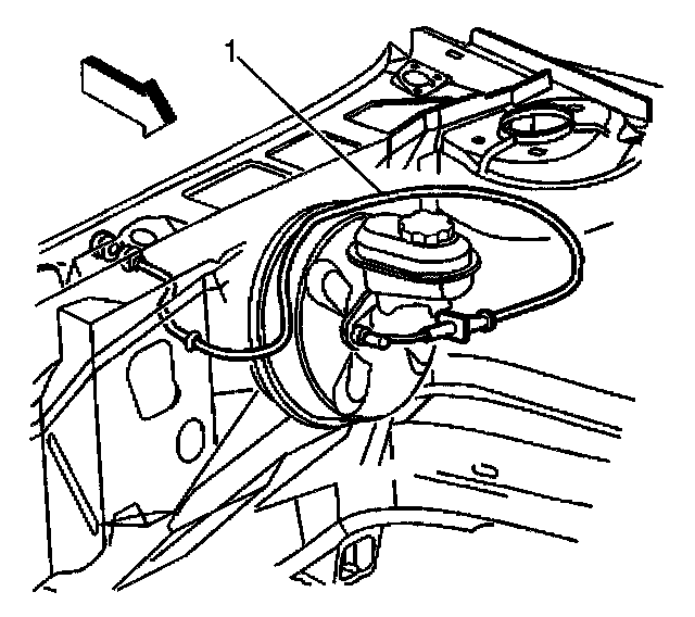 3. Squeeze the accelerator cable cover tangs and push the accelerator cable (1) through the bulkhead.